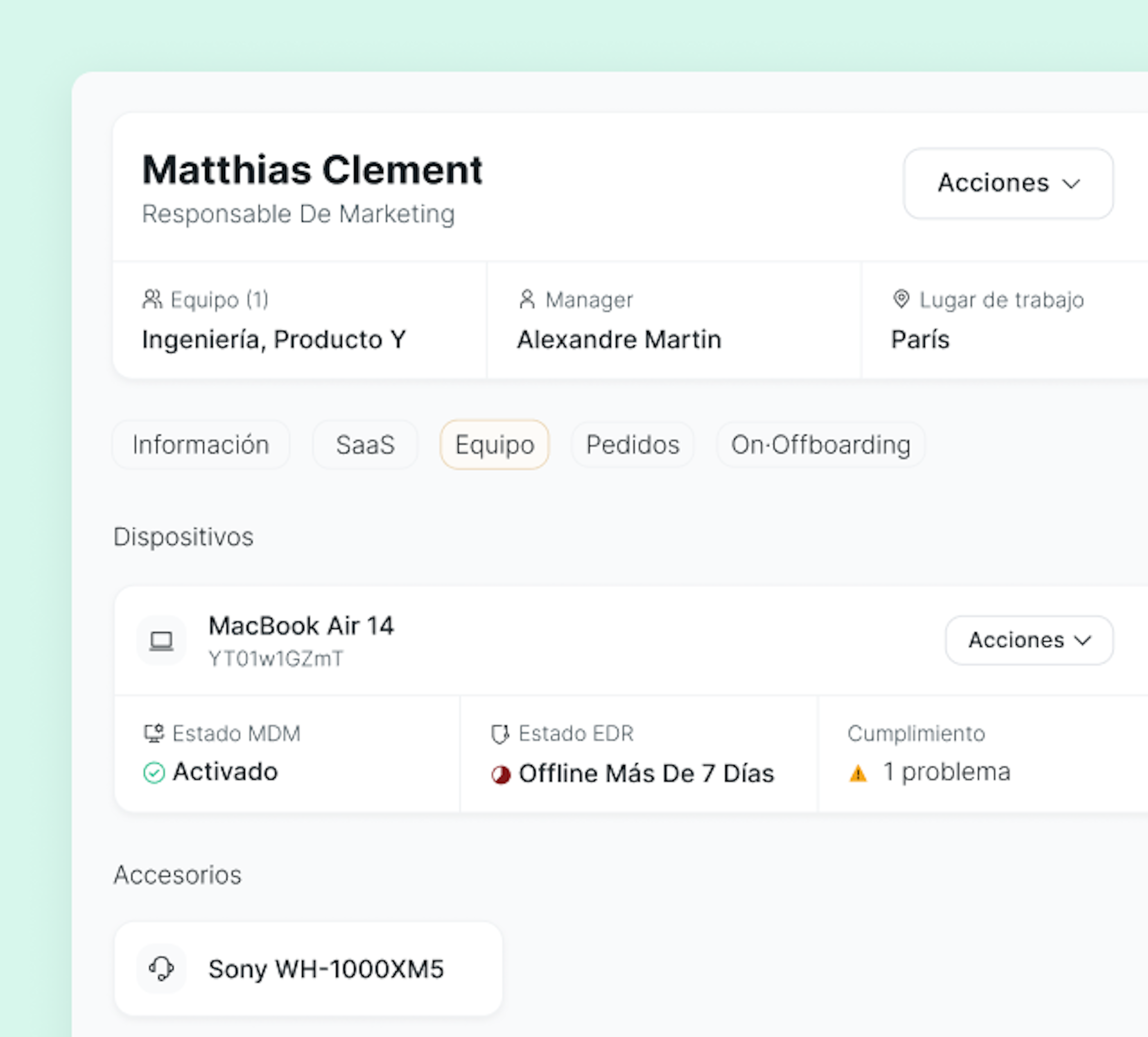 Un MDM tradicional gestiona dispositivos. Factorial gestiona tu IT.