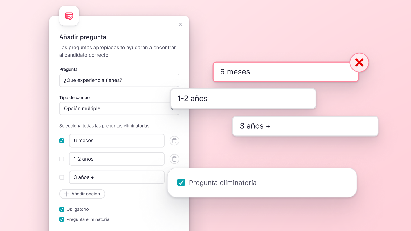 Filtra candidatos con preguntas eliminatorias
